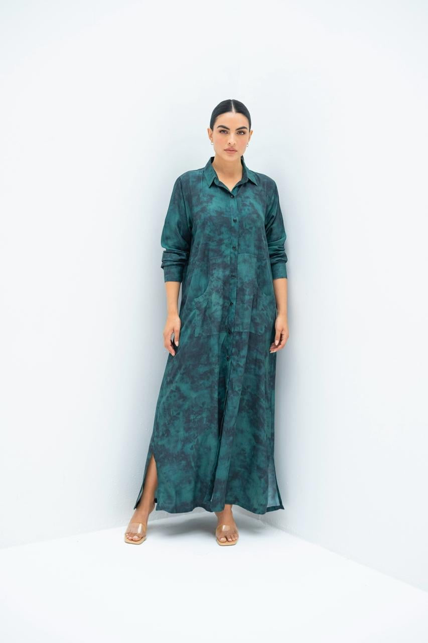 Tie Dye Green Shirt Dress